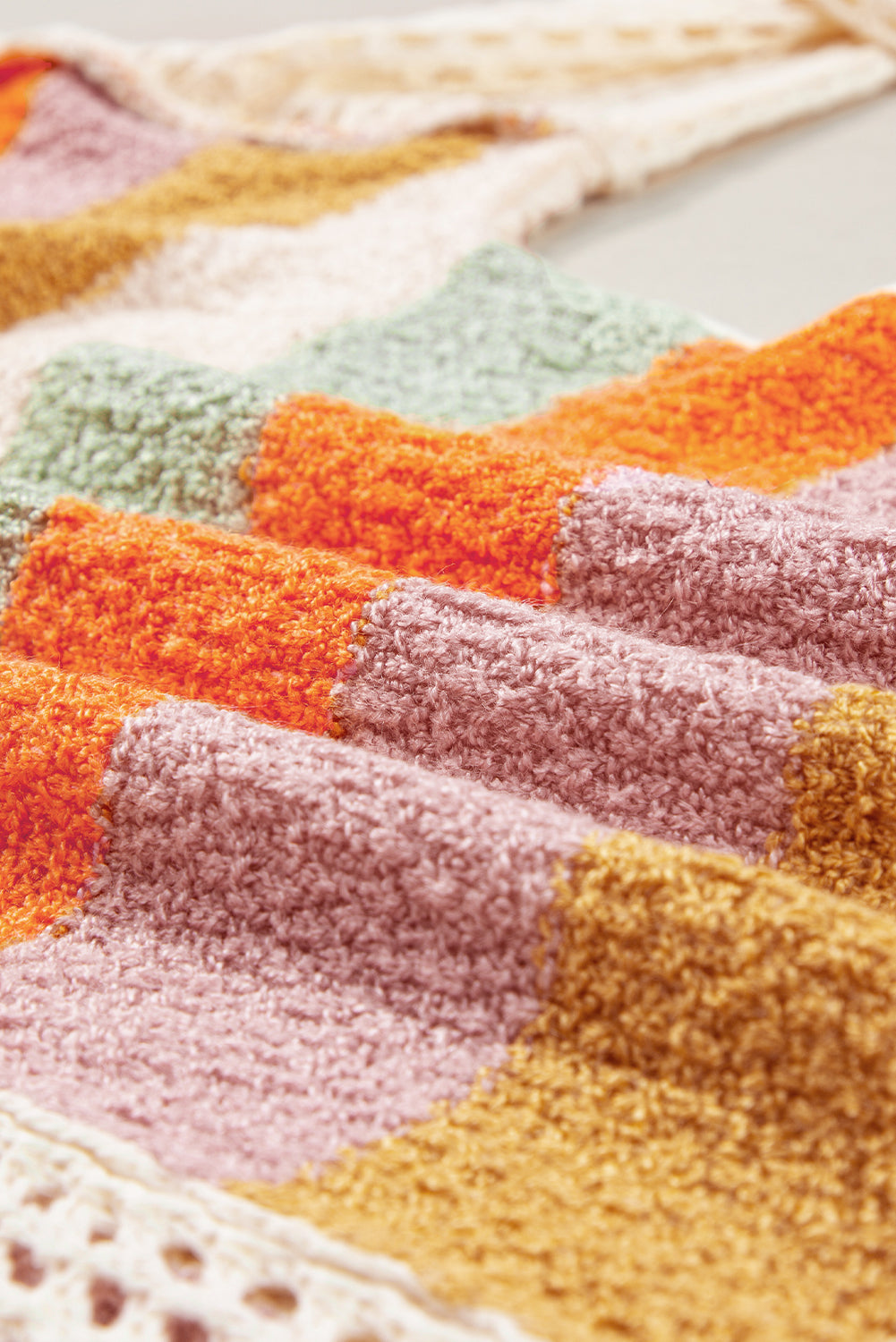 Beige Oversized Colorblock V Neck Hooded Sweater